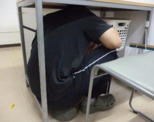 鳥取市における防災の日である9月10日に、シェイクアウトの訓練を実施しました。毎年行っている事もあり、スムーズに行動出来ました。