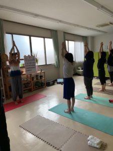 7月上旬、ヨガの先生をお呼びし、ヨガの基礎を教わりました。